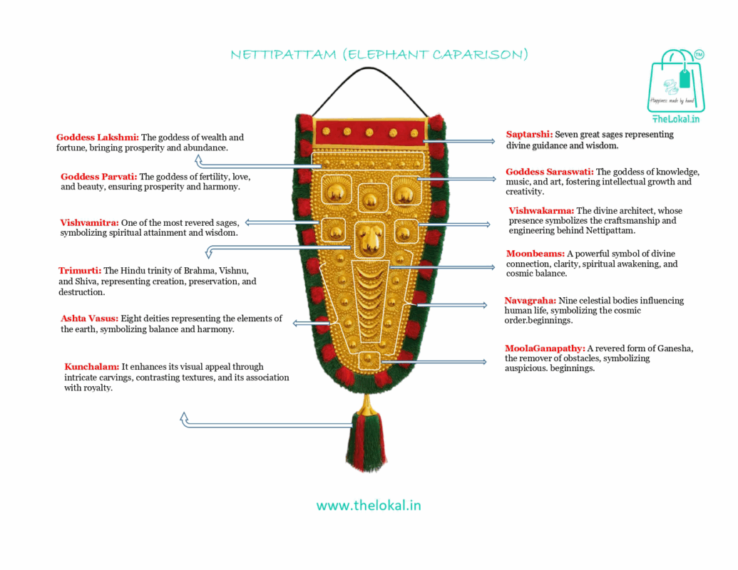 Each element in a Nettipattam carries profound meaning, connecting to Hindu mythology, spiritual concepts, and Vedic principles: